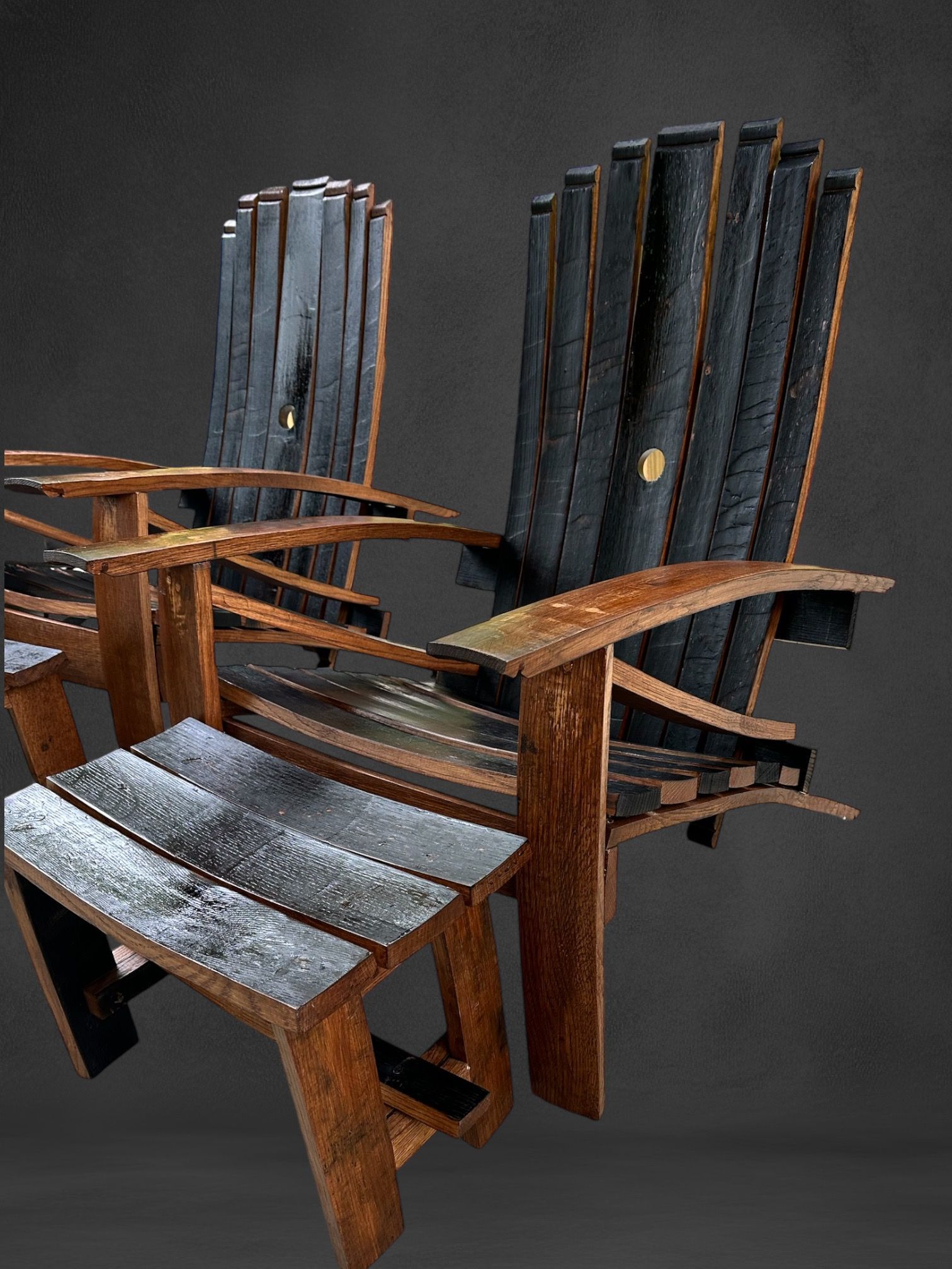 Our Adirondack style Bourbon Barrel Retreat chairs, are a head turning and unique seating option for your outdoor space. Each chair is meticulously handcrafted from one whole bourbon barrel, showcasing the natural beauty and rich history of the wood. The curved design and wide armrest of the Adirondack style "without the Adirondack pain" provides unparalleled comfort and ease of access. Perfect for enjoying a glass of bourbon or simply unwinding in style. Elevate your outdoor experience with our one of a kind bourbon barrel retreat chairs. Where luxury meets rustic charm.